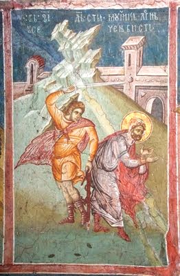 La escena ya estaba lista. Moviéndose rápidamente, el mártir se aproximó a los soldados que se estaban despertando y les reveló su verdadera identidad: